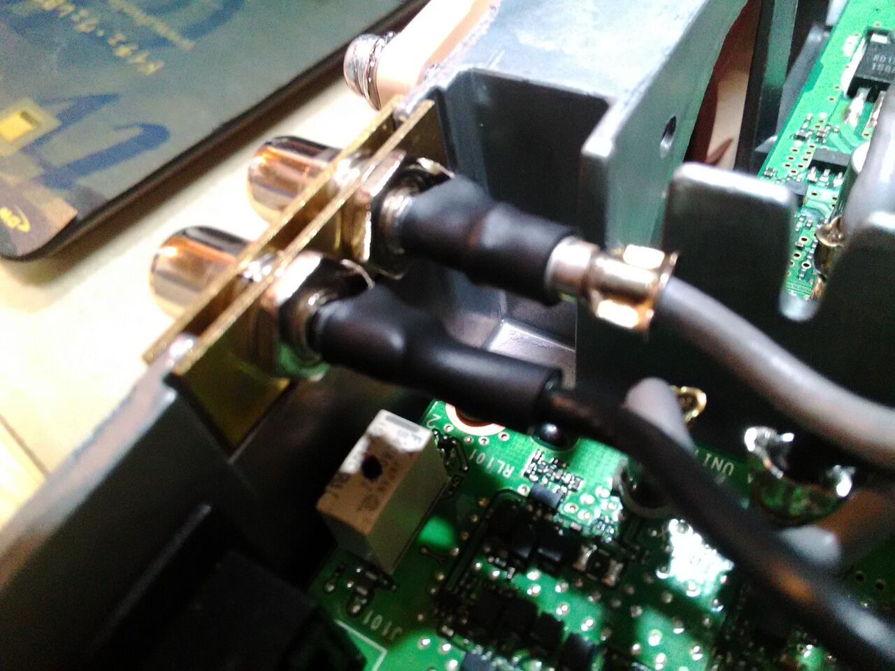 さらにRCAから伸びているケーブルの圧着部が飛び出していて、完全に高さが合っていないし。